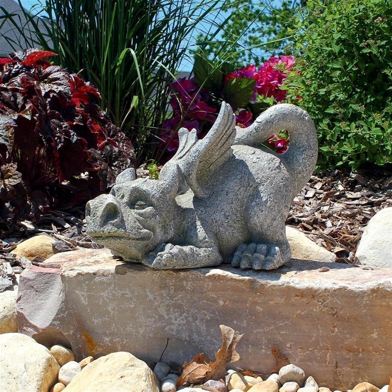 Though he’s still a young pup with a sweet look, our fiery gargoyle is ferocious enough to cause intruders dragon sized issues! From fledgling wings to paws he’s sure to grow into, our spiny-tailed collectible beast is artistically sculpted, then cast in designer resin with a faux stone finish. Happy in home or garden, our Medieval dragon statue is found exclusively at Design Toscano.
