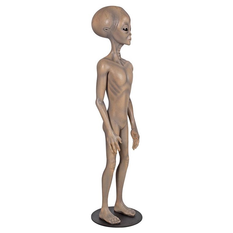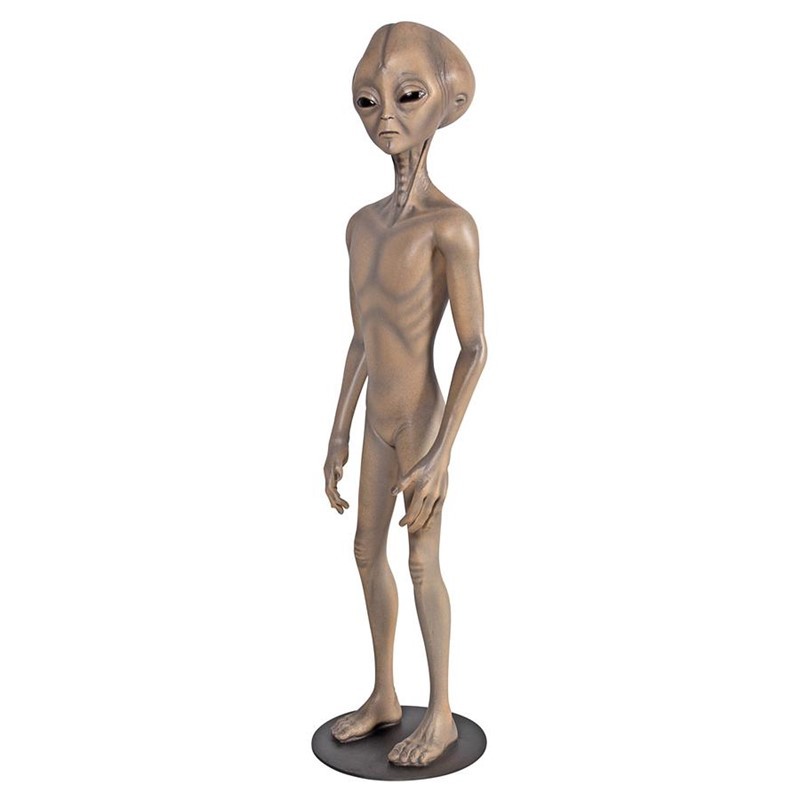 We’re going extra-terrestrial with this otherworldly alien ready to crash-land in your home, garden or alien safe room! Fashioned after the creatures aboard the alleged UFO the Air Force said was a military surveillance balloon that crashed near Roswell, New Mexico in 1947, our extra-terrestrial alien statue will become your favorite foreign, otherworldly mystery from outer space. Cast in quality designer resin and reinforced with fiberglass to crash land the paranormal into your creative home or garden, this space age, hand-painted star ship explorer sculpture will teleport your decor into the cosmos. This Area 51 grey alien arrives attached to his disk base to allow him stability in our earth’s atmosphere. It’s a Design Toscano favorite of earthlings, Sci-Fi collectors and Trekkie fans alike.