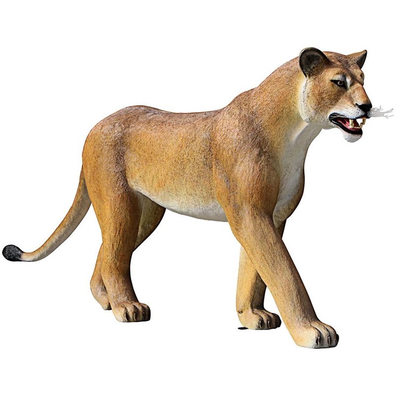 Our regal lioness with eye-catching African beauty will proclaim that your home is truly your castle The artist has sculpted the more than four-foot long ferocious feline, from her focused gaze to chiseled muscles, then cast her in quality designer resin and hand painted in naturalistic tones to lend the call of the wild African pride to your home or garden. Another breathtaking garden animal statue from Design Toscano This large-scale, display-quality sculpture transforms any home, garden, restaurant or hotel into something truly magnificent.