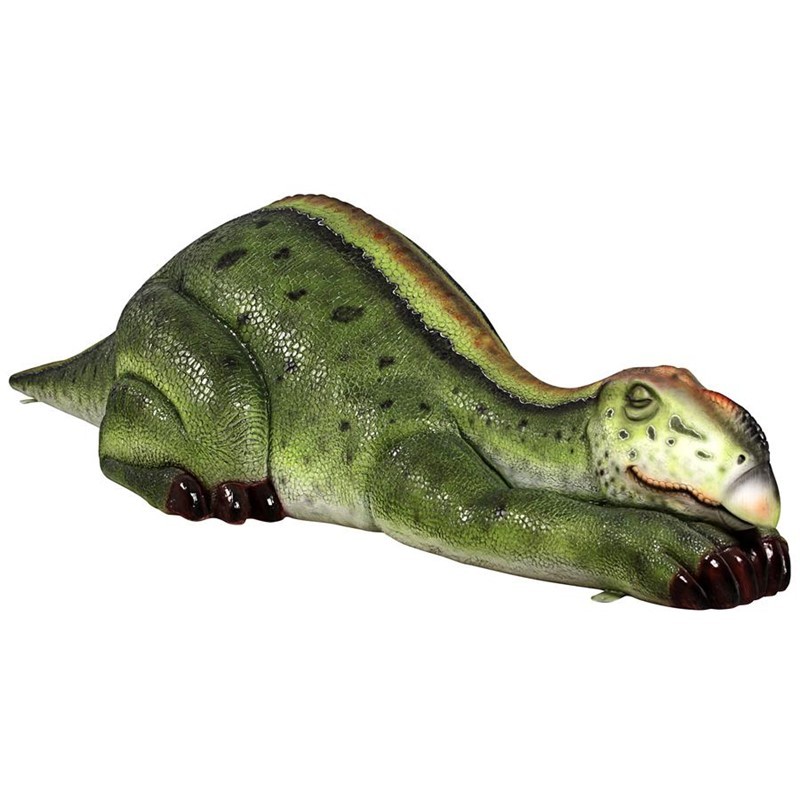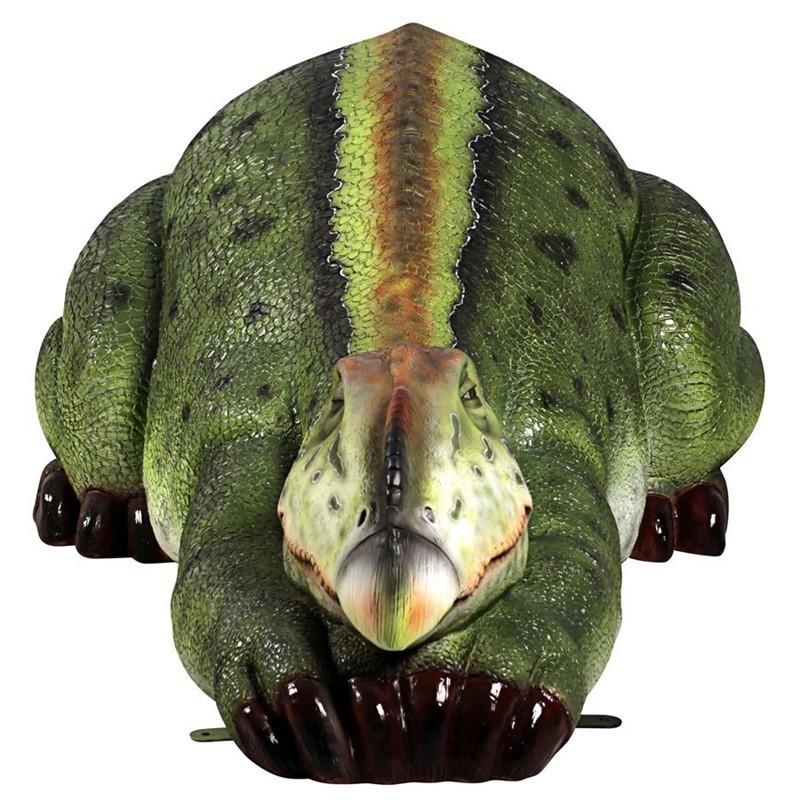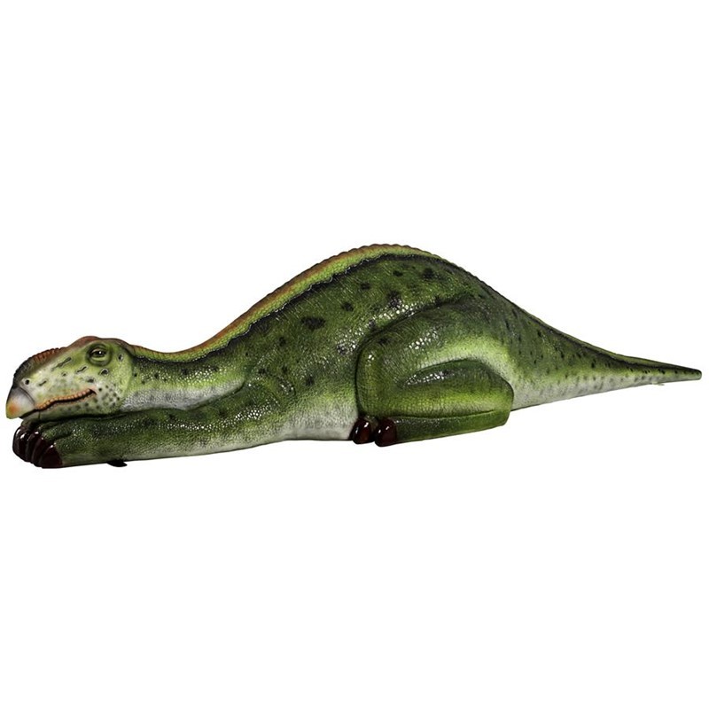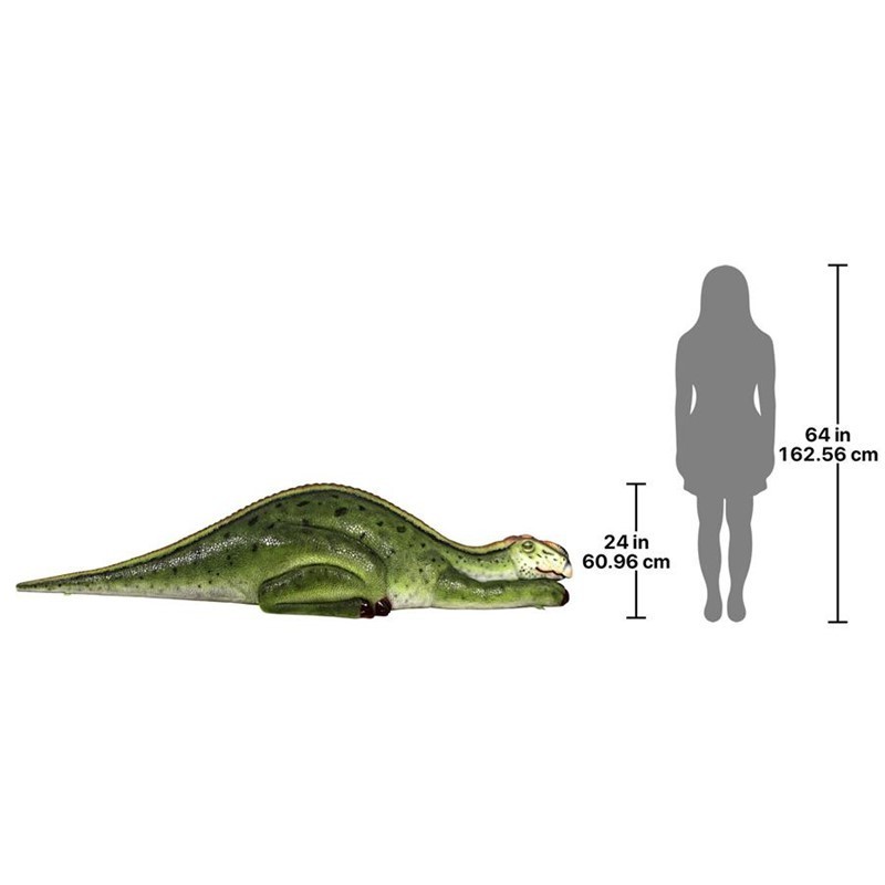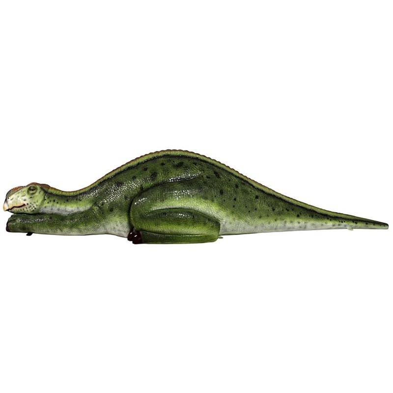 Though we first thought it a joke, this mongrel of a dinosaur actually lived in the Cretaceous Period and is named for its discovery site in Muttaburra near Queensland, Australia With cartoonish features such as flat skull, pointed snout and broad feet, kids love our almost 10-foot long replica dinosaur mutt, and it makes a great slide Our Design Toscano artist has sculpted each dinosaur detail with realistic texture, then cast it all in quality designer resin reinforced with fiberglass for strength. Hand-painted one piece at a time for authenticity, this Jurassic-scale piece is beyond compare, and a true value for its massive size! This display-quality lawn ornament transforms any home, garden, restaurant or hotel into something truly magnificent.