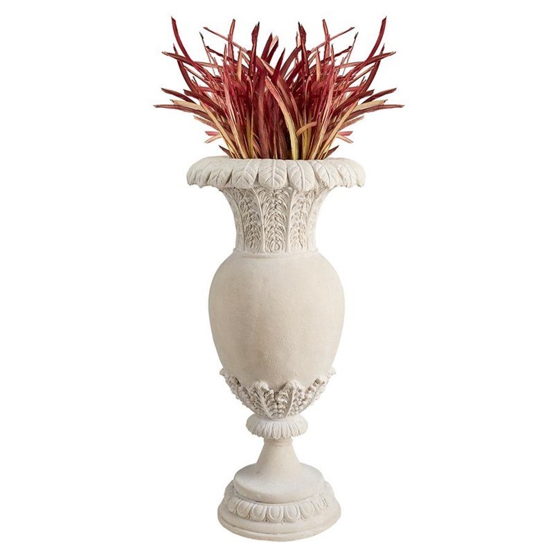 Replicating the grand design of the court of Versailles, this stunning piece is an artistic, grand-scale, architectural element. Fraught with exquisite detail from its breathtaking acanthus leaf neck and waist to the stately egg and dart plinth, it is just as impressive displayed alone as filled with your lush greenery. Cast in quality designer resin for display in home or garden, this over 2-foot-tall, Design Toscano-exclusive masterpiece boasts an exquisite faux stone finish. Imagine a pair flanking an entry or grand staircase.